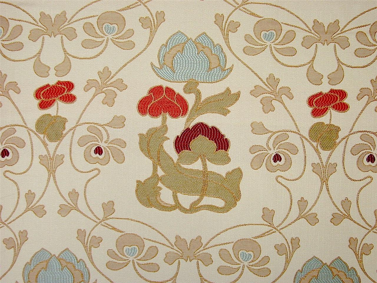 Elegantní dekorační textilie s klasickým květinovým secesním dekorem - čistý secesní tkaný motiv. Látka je vhodná pro vytvoření reprezentativních závěsů, elegantního čalounění sedacího mobiliáře nebo i netradiční stěnová tapetáž - textilii můžete takto použít i pro stěnové panely. Pevný a silný materiál, bavlna a polyester, klasická šířka 137cm.